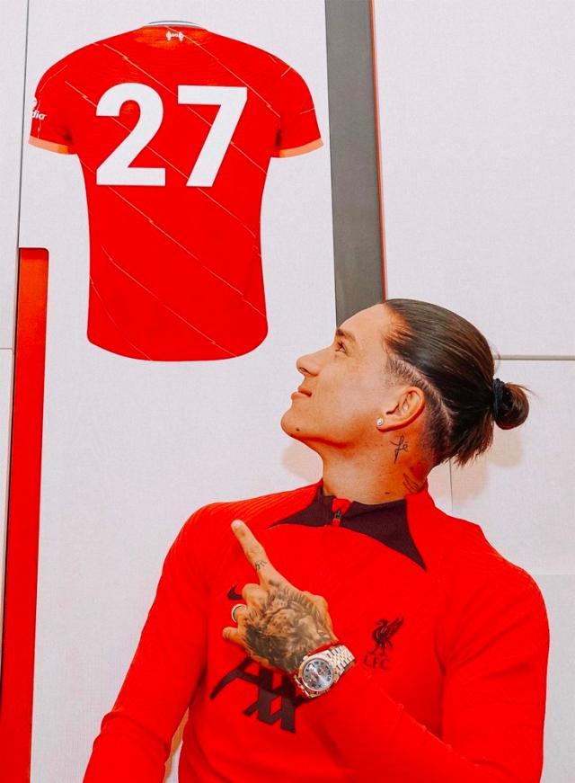 英国当地时间周二,利物浦俱乐部正式官宣了22岁乌拉圭前锋达尔文·努涅斯加盟的消息,他将身披奥里吉留下的27号球衣。在此之前,努涅斯的原俱乐部本菲卡已经率先宣布了这笔交易,总价最高可达1亿欧元,包括7500万基础费用和2500万附加条款。而在获得英国劳工许可证之后,努涅斯正式成为了红军一员。